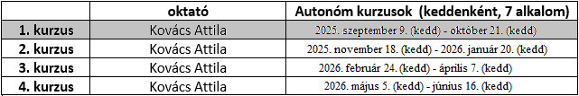 * Amennyiben a jelentkezők száma nem éri el a minimum 3 főt, a kurzus nem indul el.
