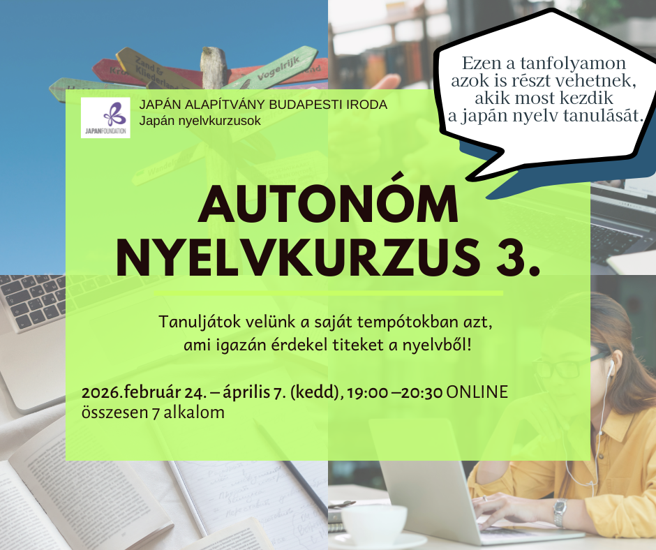 Ezen az ONLINE kurzuson a hallgatók képzett oktatók segítségére, tanácsaira támaszkodva állítják fel saját nyelvtanulási tervüket, illetve sajátítják el az egyes tanulási technikákat. A tanfolyam egyik legfőbb előnye, hogy a résztvevők egyénileg dönthetik el, milyen irányban, hogyan szeretnének fejlődni. Lehet tankönyv alapján haladni, internet, animék vagy mangák segítségére támaszkodni, vagy éppen a többiekkel párokba állva a társalgást gyakorolni.