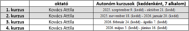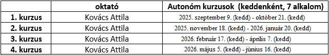 * Amennyiben a jelentkezők száma nem éri el a minimum 3 főt, a kurzus nem indul el.