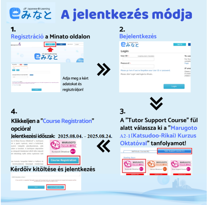 * A link kattintás után a Minato nyelvoktatási platformra navigál. A jelentkezéshez előzetes regisztráció szükséges. A regisztráció ingyenes.