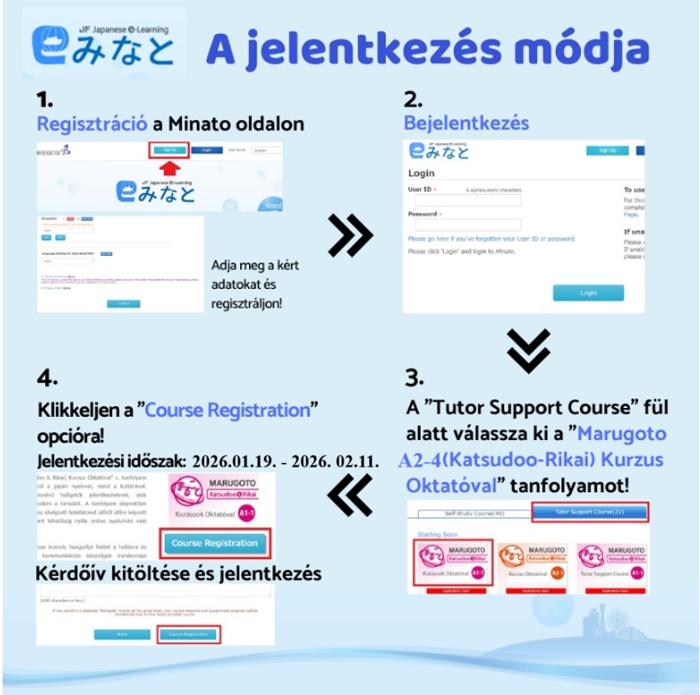 * A link kattintás után a Minato nyelvoktatási platformra navigál. A jelentkezéshez előzetes regisztráció szükséges. A regisztráció ingyenes.