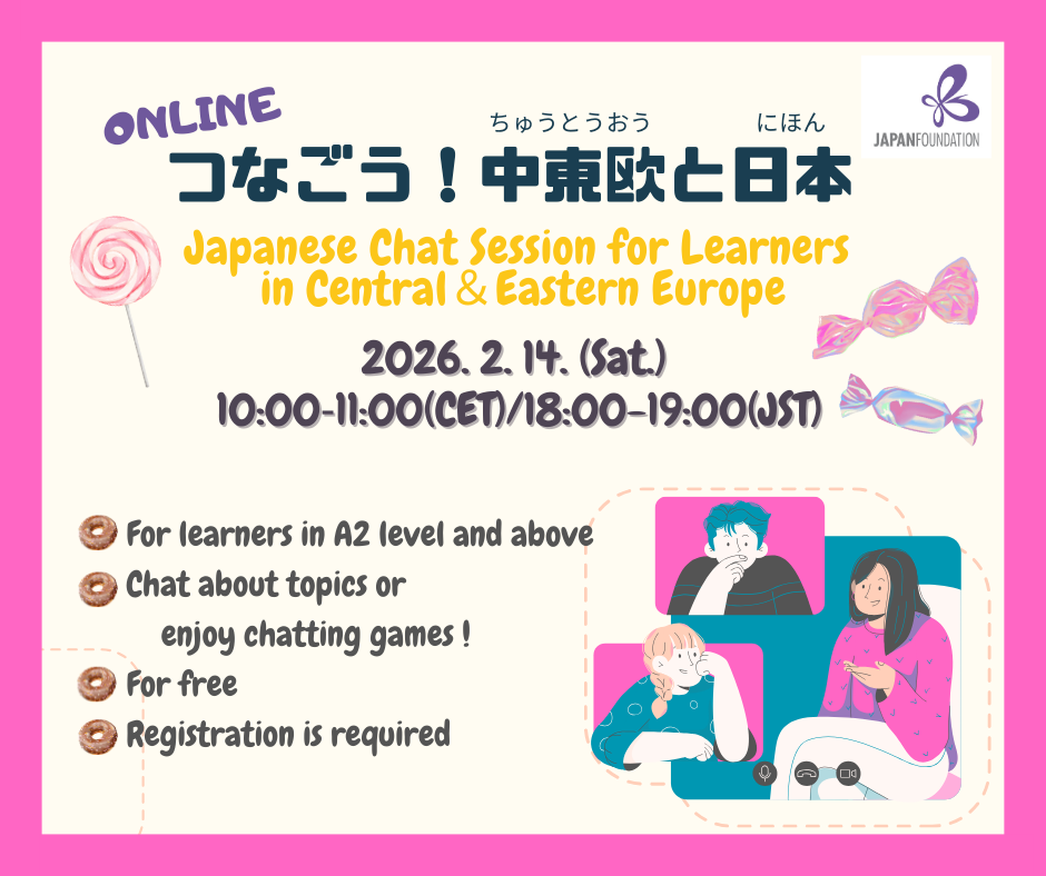 2023. októbertől "Kössük össze! Kelet-Közép-Európa és Japán" címmel online chat-kört indítottunk. Célunk az, hogy a japán nyelven való kommunikáció révén összekössük (a főként) a kelet-közép-európai országokban japánul tanulókat japán anyanyelvűekkel.