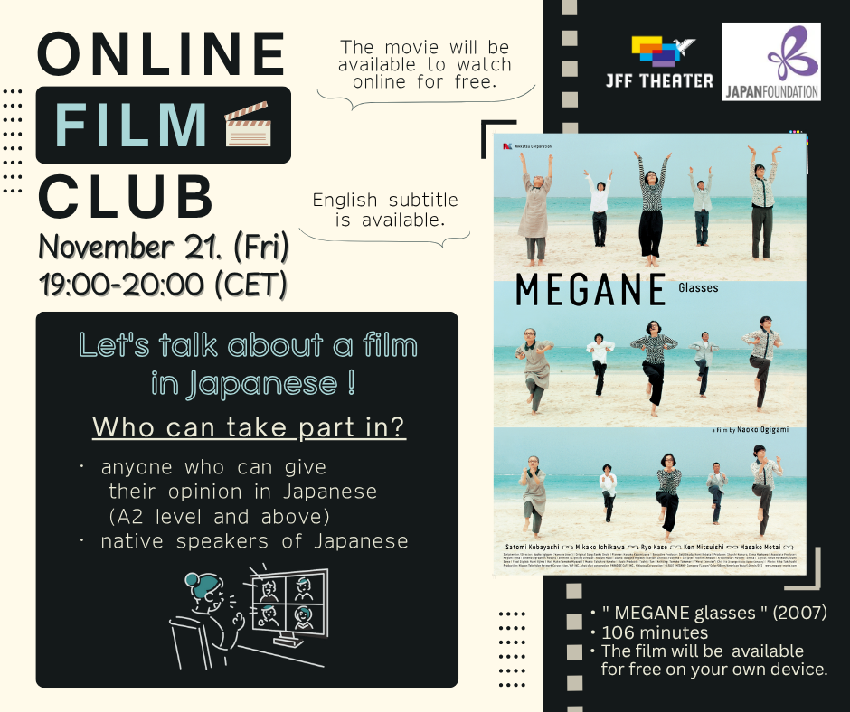 ☆JFF Theaterのウェブサイト(https://www.jff.jpf.go.jp/movie/megane-glasses/)で無料で見られます。