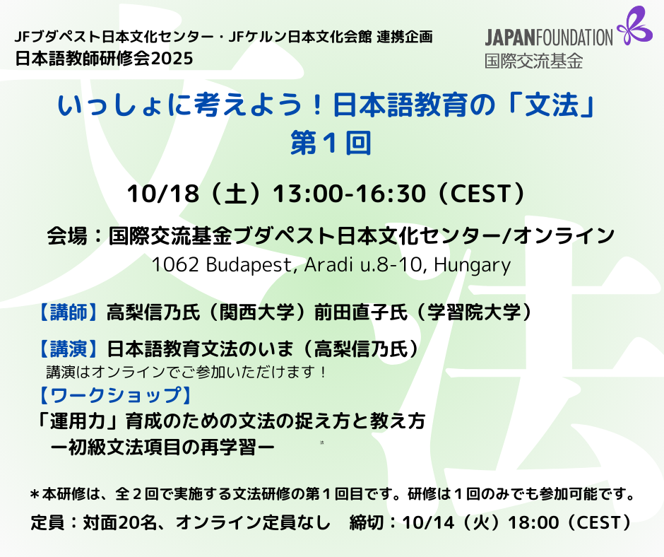 会場:ブダペスト日本文化センター/オンライン
