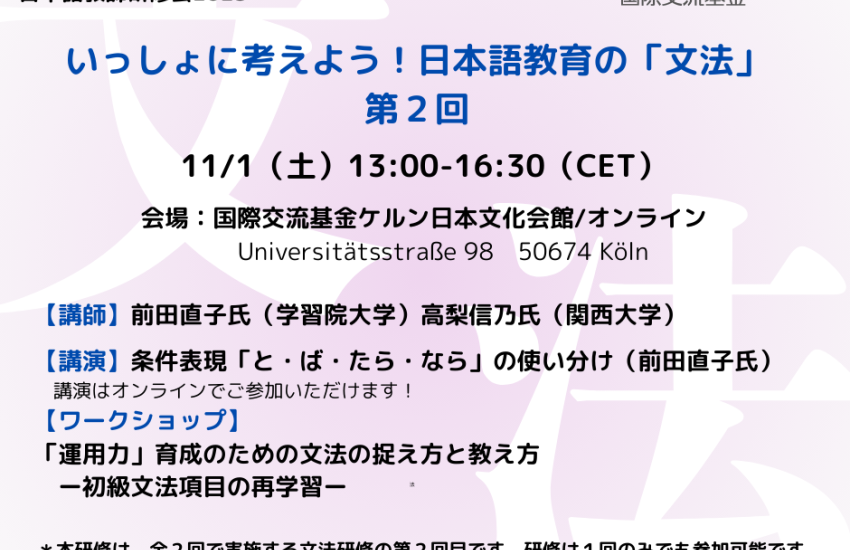 日本語教師研修会2025:いっしょに考えよう!日本語教育の「文法」2.(JFブダペスト・JFケルン共催)